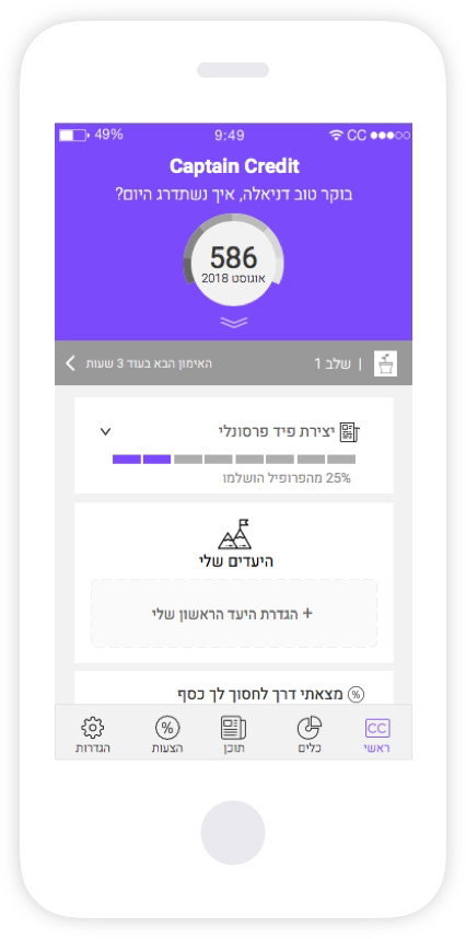 Captain Credit is a new free credit score and finance tracking app available in Israel. The app reflects the user’s financial status and helps him gradually improve it in order to achieve optimal economic conduct.